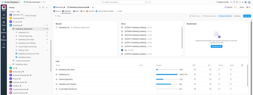 Overwhelmed by digital clutter? At Virtual Champions PH, we help solopreneurs organize their workflows with ClickUp systems that actually stick.